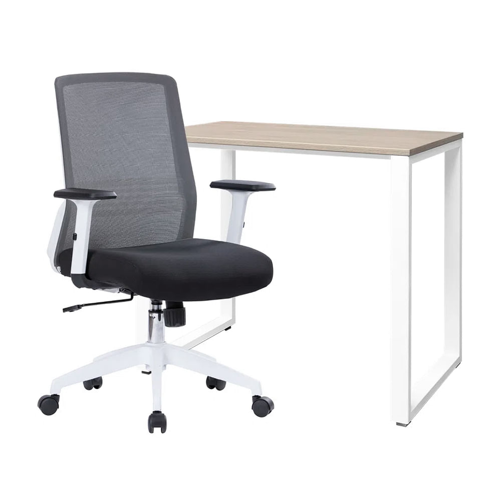 1 Escritorio Oh 90x50 Base Blanco + 1 Silla Lutton Lux
