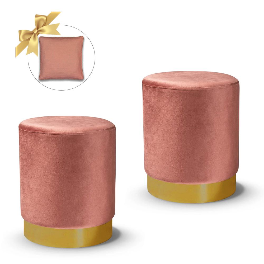 2 Puff Redondo con Base Metálica LeMueble Coral + 1 Cojín