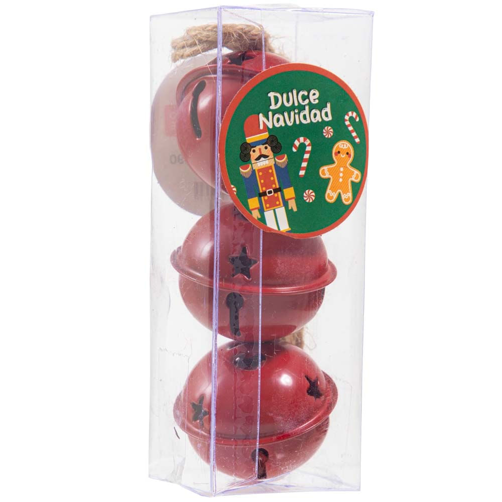 Adornos DECO HOME Set Cascabeles Rojos Dulce Navidad x3