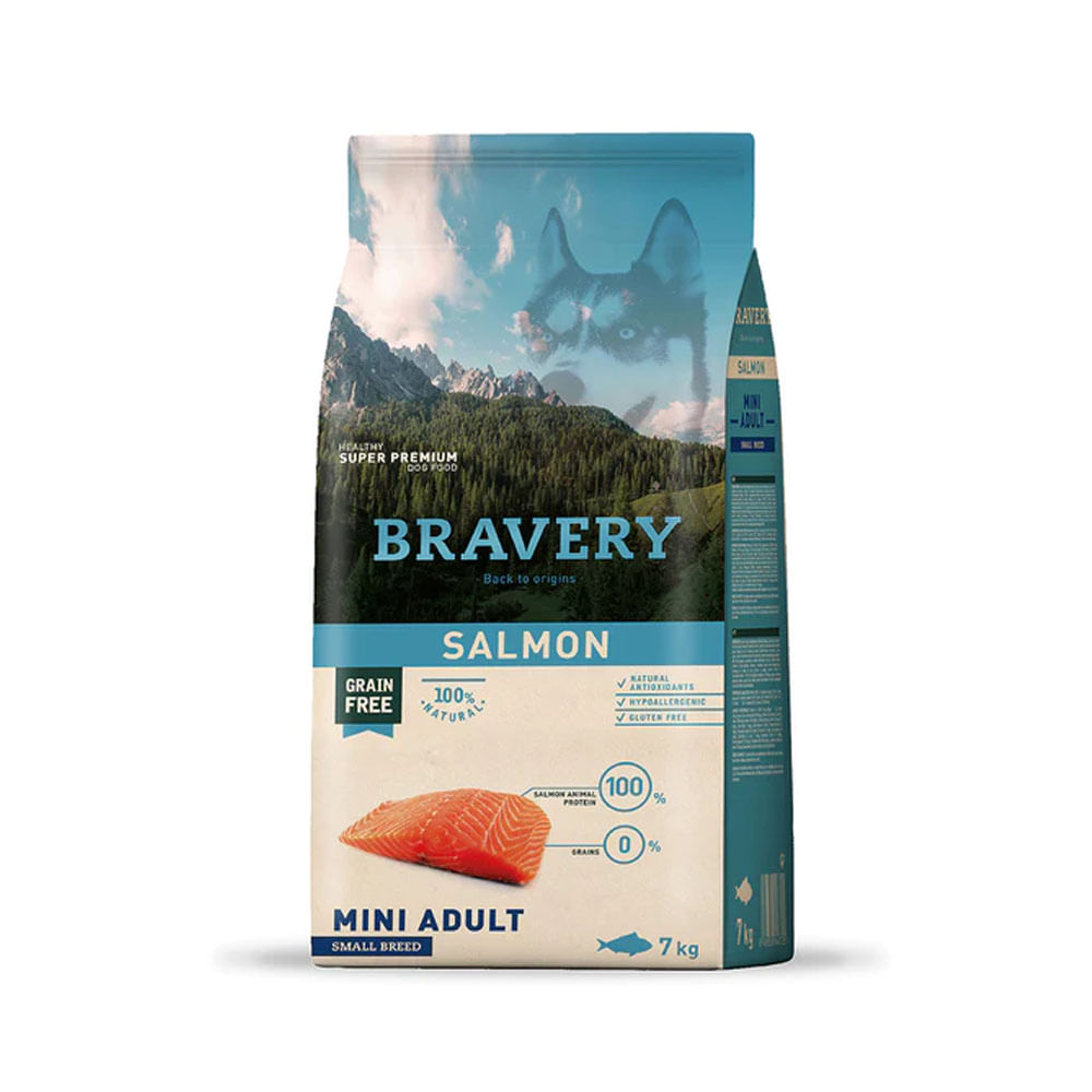Alimento para Perros Raza Pequeña Adulto Bravery Salmón 7Kg