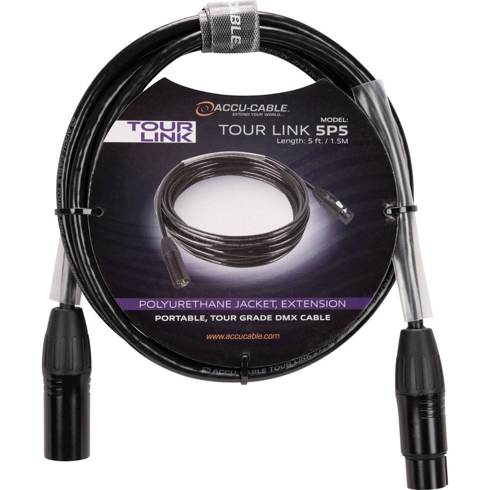 American DJ Tour Link 5P5 Cable DMX Profesional 5-Pin de 5' para Iluminación, Rendimiento y Durabili - 1811420-REG