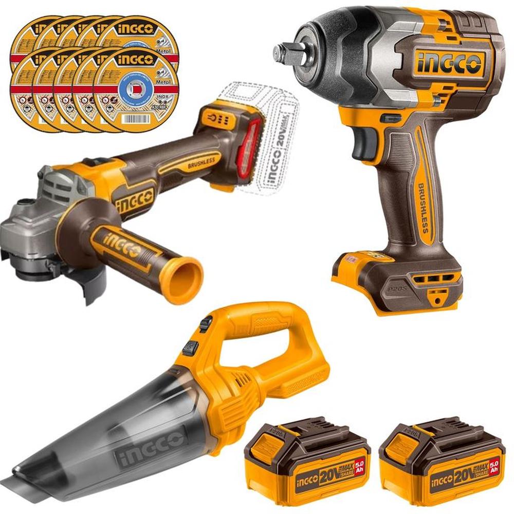 AMOLADORA, LLAVE DE IMPACTO BRUSHSLESS, ASPIRADORA 20V 2 baterias 5A Amarillo