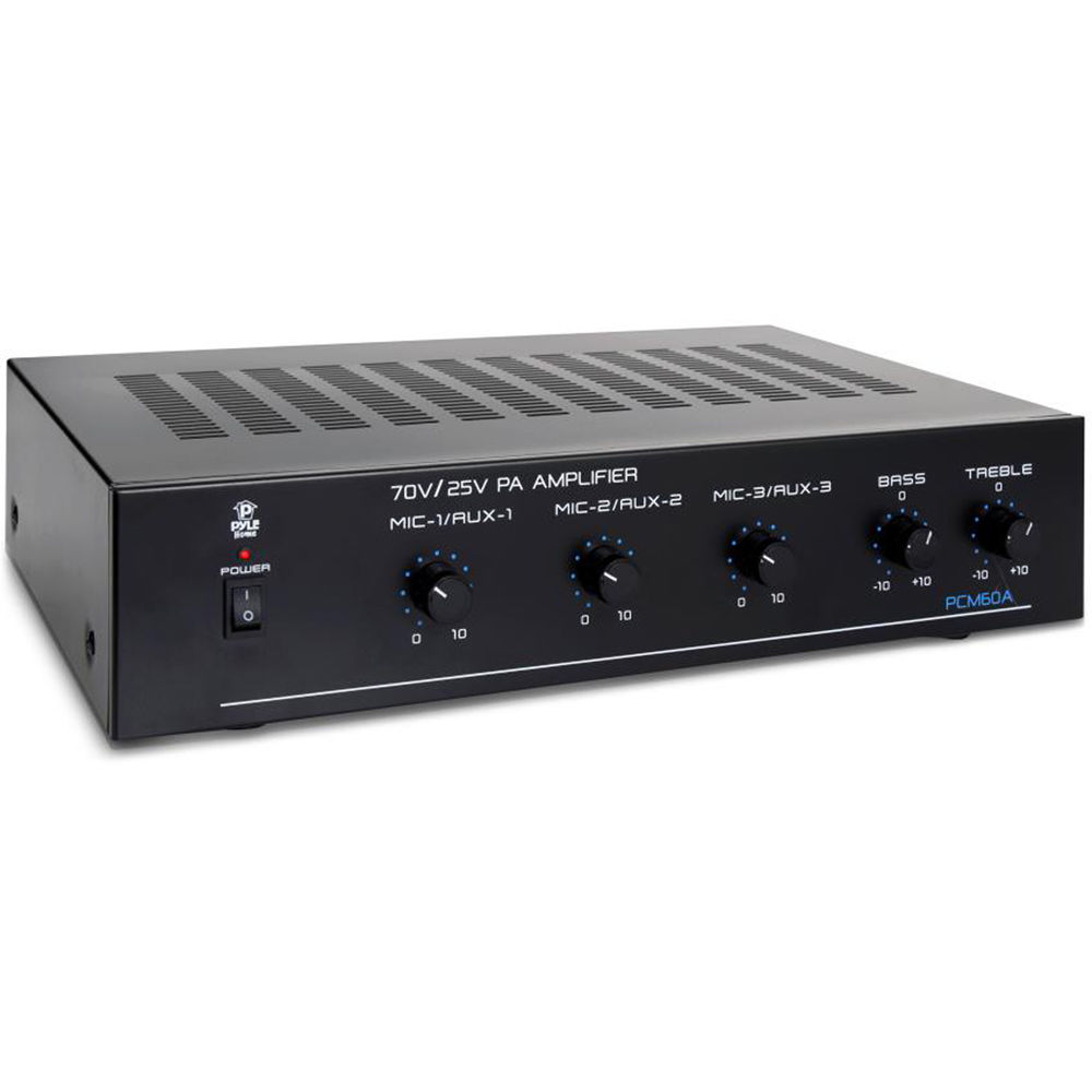 Amplificador de Potencia Pyle Home PCM60A 100W con Salida 25V/70V, 3 Entradas de Micrófono Balancead