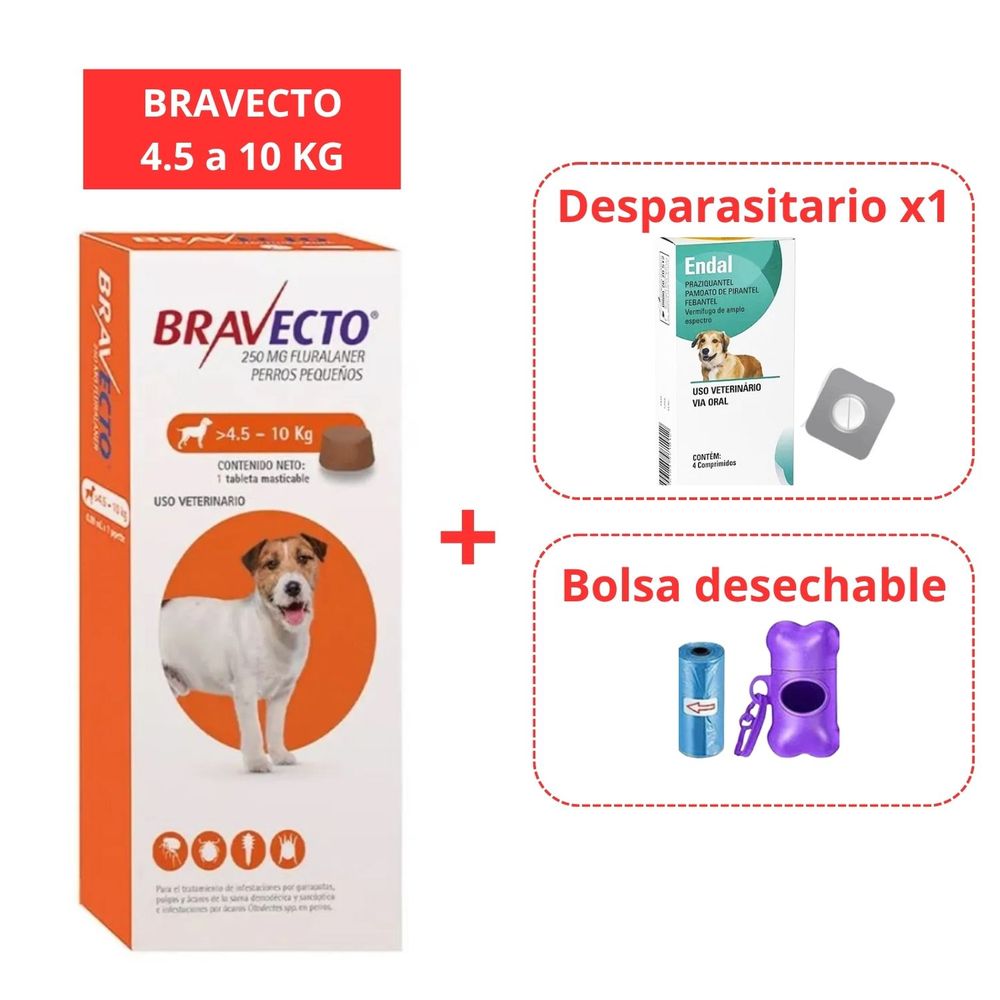 Antipulgas Bravecto para perros de 4.5 - 10 kg más Gratis Endal Y Bolsa desechable
