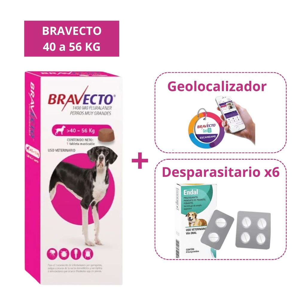 Combo Antipulga Bravecto 40-56 kg más Gratis Geolocalizador y Endal Plus