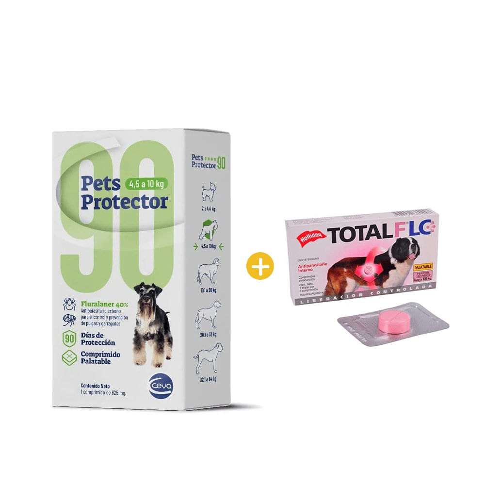 Antipulgas Pets Protector 90 4.5 a 10 Kg x 1 Comp. y GRATIS AP Holliday Total Full 1000Mg x 1 Comp