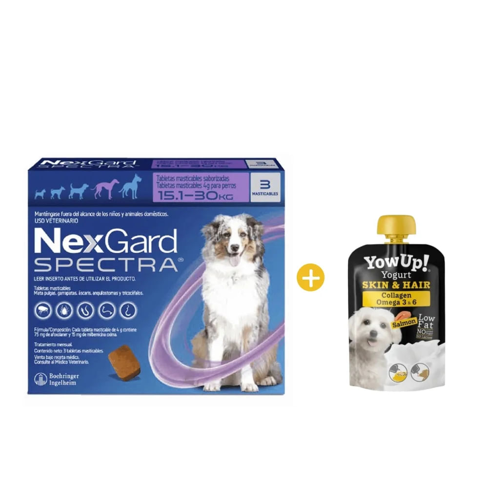 Antipulgas y Antiparasitario Nexgard Spectra L x3 Tab 15 a 30 Kg y GRATIS Yowup Yogurt Salmón 115 Gr