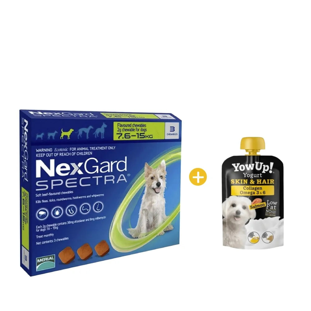 Antipulgas y Antiparasitario Nexgard Spectra M x3 Tab 7.5 a 15 Kg yGRATIS Yowup Yogurt Salmón 115 Gr