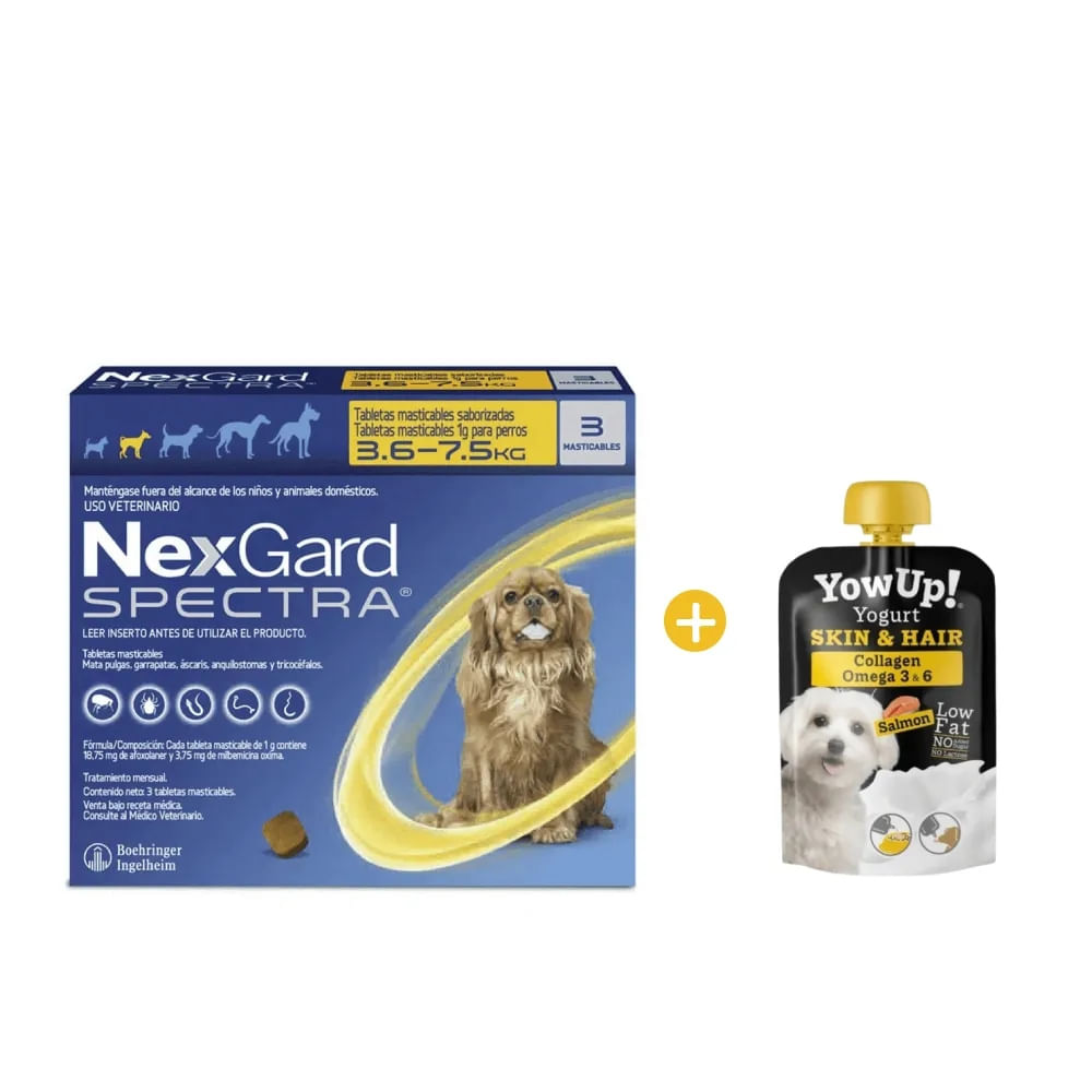 Antipulgas y Antiparasitario Nexgard Spectra S x 3 Tabletas 3.5 a 7.5 Kg yGRATIS Yowup Yogurt Salmón