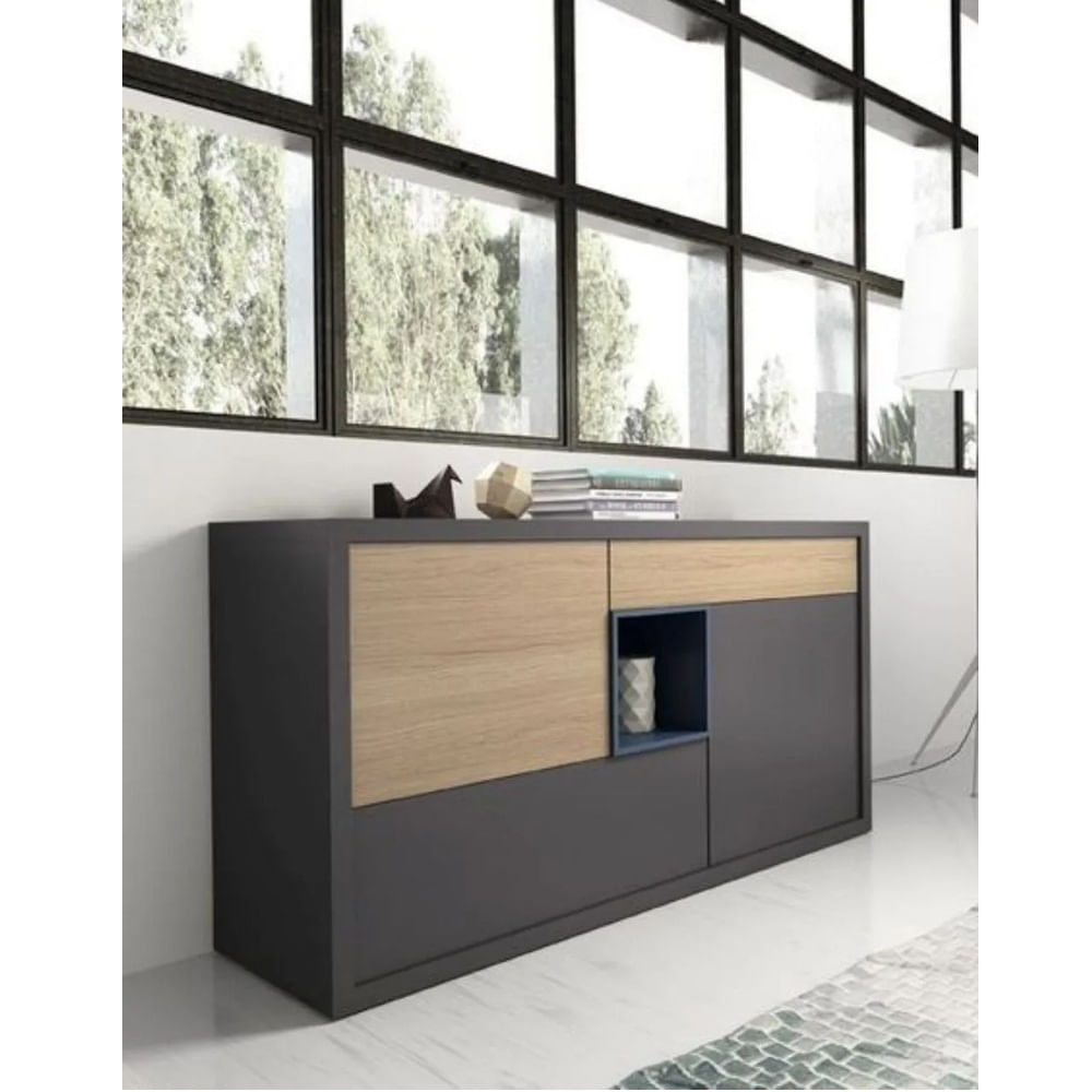 Aparador Moderno Victoria Melamina Canto Delgado Plomo, Duna y Azul TU MESITA