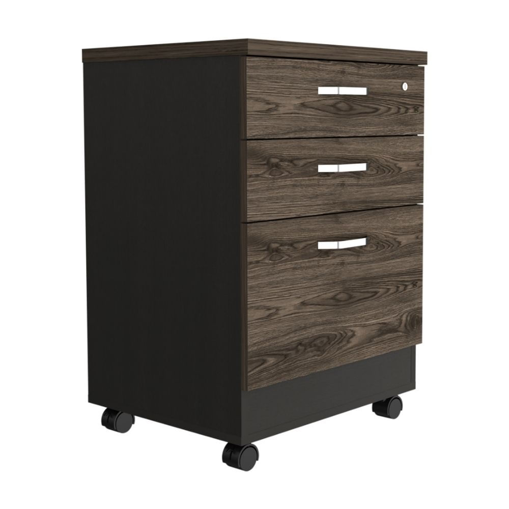 Archivador 3 Cajones Home Office Melamina Negro/Coñac