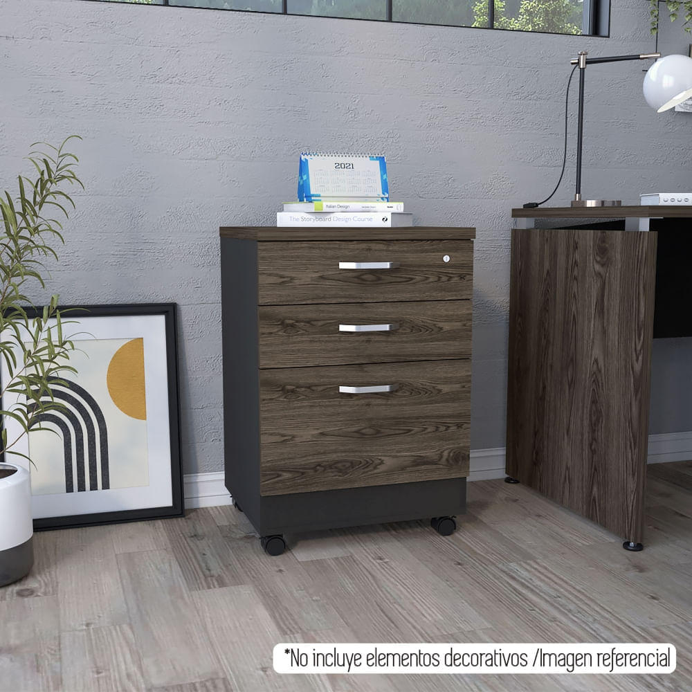 Archivador 3 Cajones Home Office Negro - Coñac