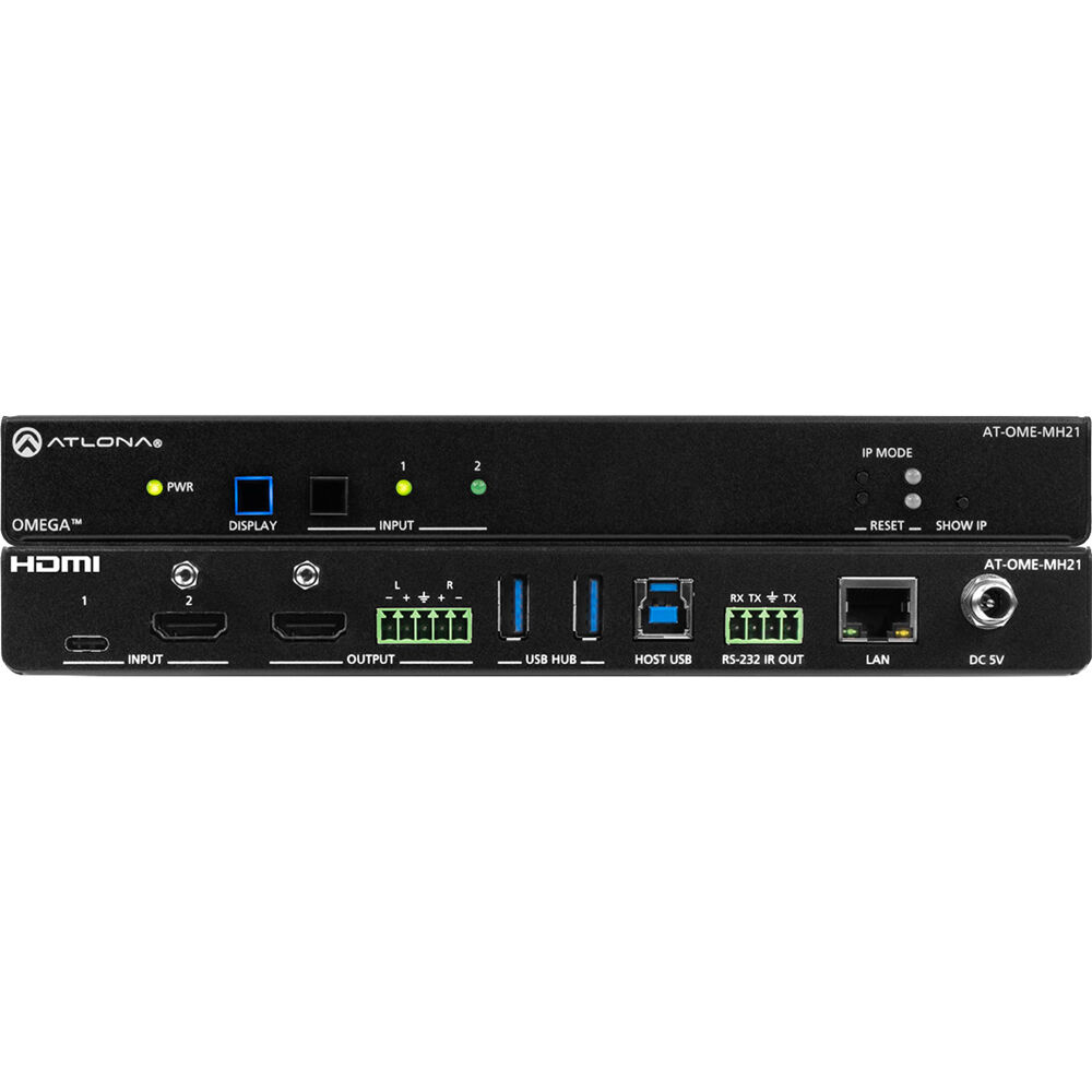 Atlona Conmutador 4K de Dos Entradas para HDMI y USB-C con Hub USB y Carga de Dispositivos