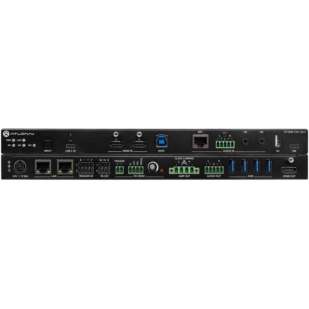 Atlona Conmutador HDMI/USB 3x1 con Amplificador de Mezcla de Audio y Hub USB - Soporte DCI 4K60, HDR