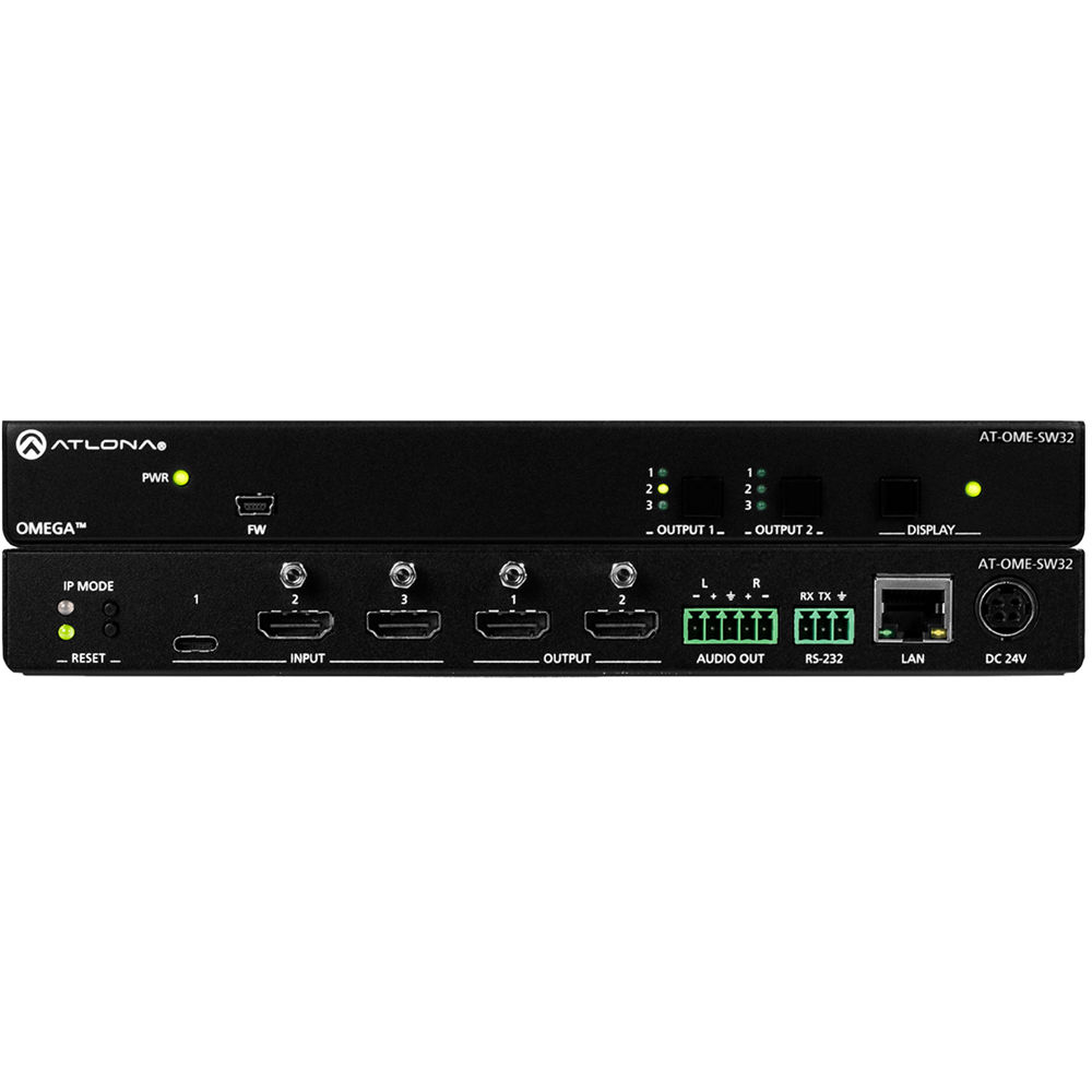 Atlona OME-SW32 Omega 4K/UHD HDR Switcher Matriz 3 x 2 con USB-C y HDMI