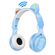 Audífono Inalámbrico Gato Bluetooth Auricular Orejas LED - Celeste