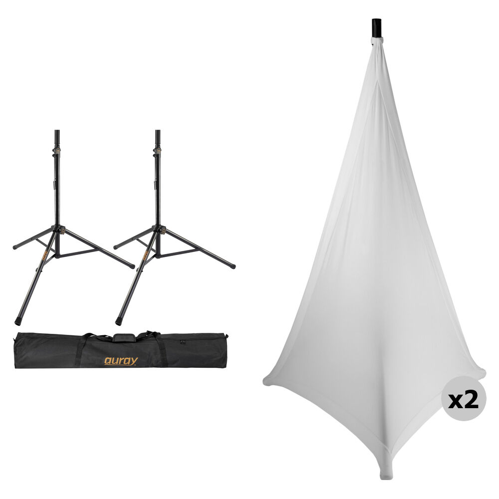 Auray Kit de Altavoces PA Deluxe con Dos Soportes de Altavoz, Dos Faldas para Soportes y Bolsa (Blan