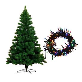 COMBO ÁRBOL DE NAVIDAD 1.8M BLANCO + LUCES MUSICALES 10M MULTICOLOR 100 FOCOS