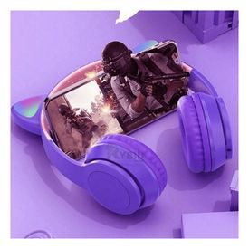 Auriculares Felino con Luces Tono Morado Y+Regalo Stickers