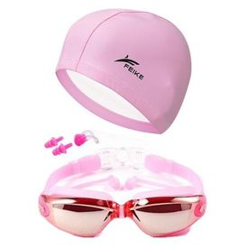 Lentes Natación Rosados HD Protección UV con Gorro Elastico