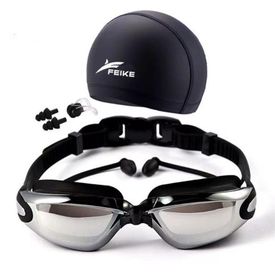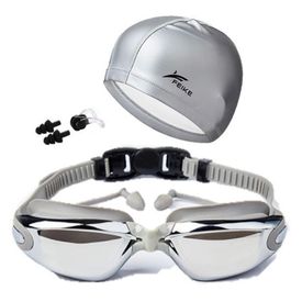 Lentes Natación Grises HD Protección UV y Gorro de Silicona