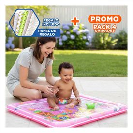 Pack4 Colchon Inflable con Agua para Bebes Rosado Facil de Usar y Guardar Y+Papel Regalo