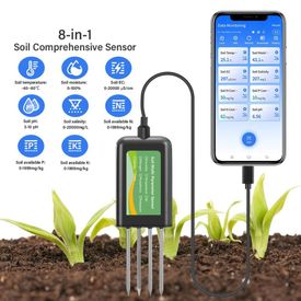 Medidor Digital de Suelo 8 en 1 Multiparámetro PH Nitrógeno Potasio Fósforo Conductividad Humedad