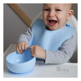 Plato y Cuchara Silicona de Mesa Niño en Celeste Y+Stickers