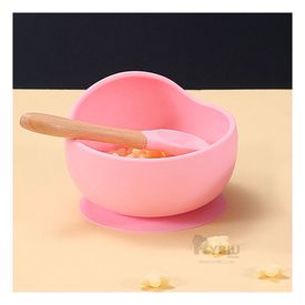 Plato Cuenco de Silicona y Cuchara para Bebe en Color Rosado