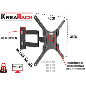 Rack para Tv Lcd Smart Curvo Doble Brazo Triple Giro de 32 a 65" Krearack Negro