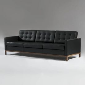 SOFA DE TRES ASIENTOS KNOLL EN CUERO NEGRO CON BASE DE MADERA