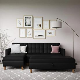 Sofá Seccional Hatford negro cuero pranna dos piezas más baúl