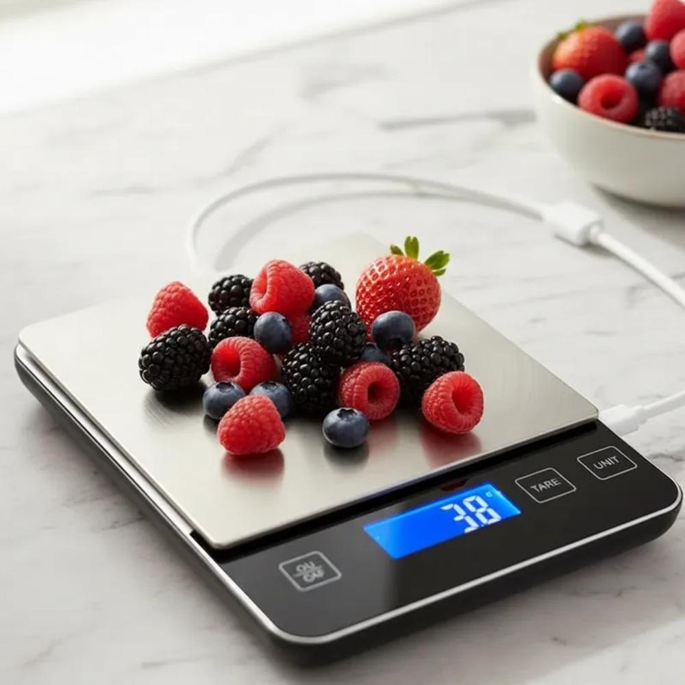 Balanza gramera acero inoxidable 10KG con botones táctiles a bateria y pilas AAA KF-72