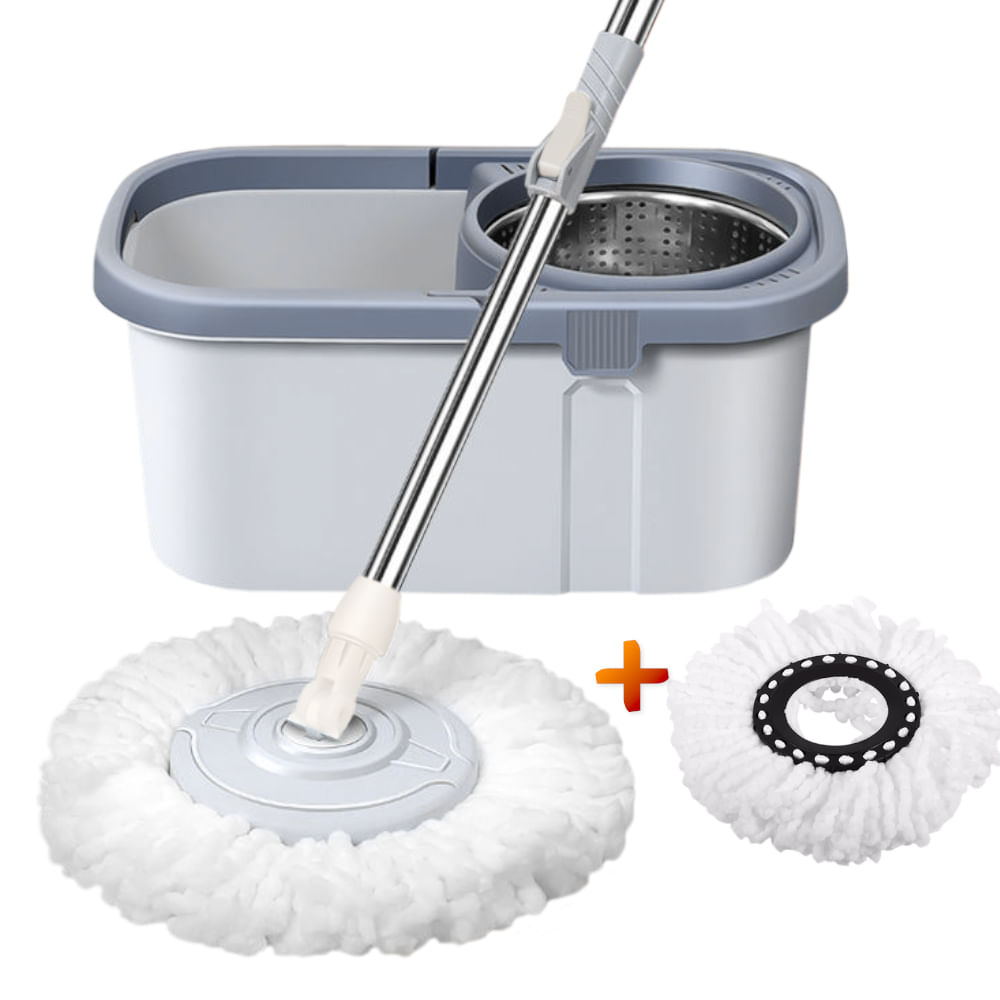 Balde Trapeador Giratorio con Escurridor y Mopas Plomo