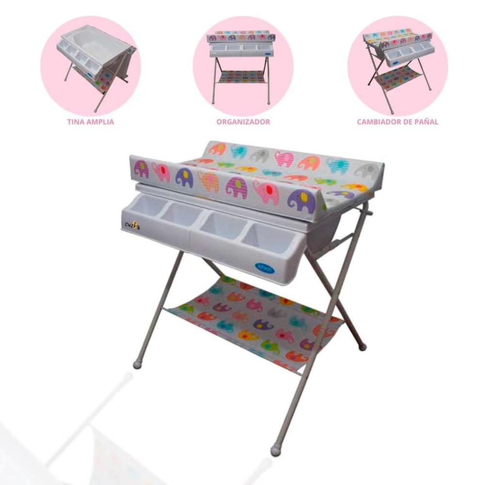Bañera Cambiador Plegable 2 Pisos «ELEPHANTS» Pink