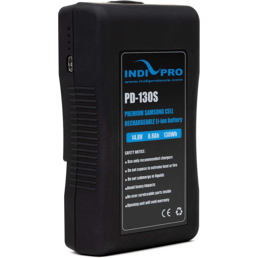 Batería Li-ion IndiPRO Tools Compact 130Wh V-Mount - 14.8V, 8.8Ah, Soporta 10A, D-Tap, Medidor de Po