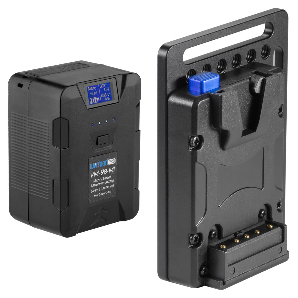 Batería Micro V-Mount Watson 14.4V 98Wh con Kit de Placa de Montaje para Cámara: Conexión a Jaula, S