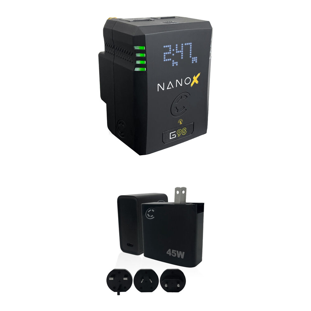 Batería NANOX 98Wh Gold Mount con Cargador Rápido de 45W (Kit) para Cámaras Profesionales