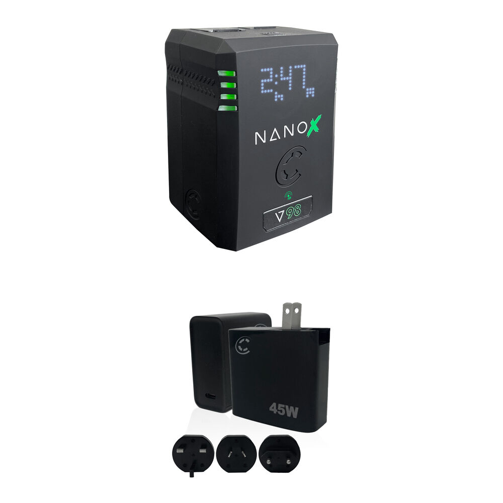 Batería NANOX 98Wh V-Mount con Cargador Rápido de 45W y Cable USB-C para Cámaras Profesionales