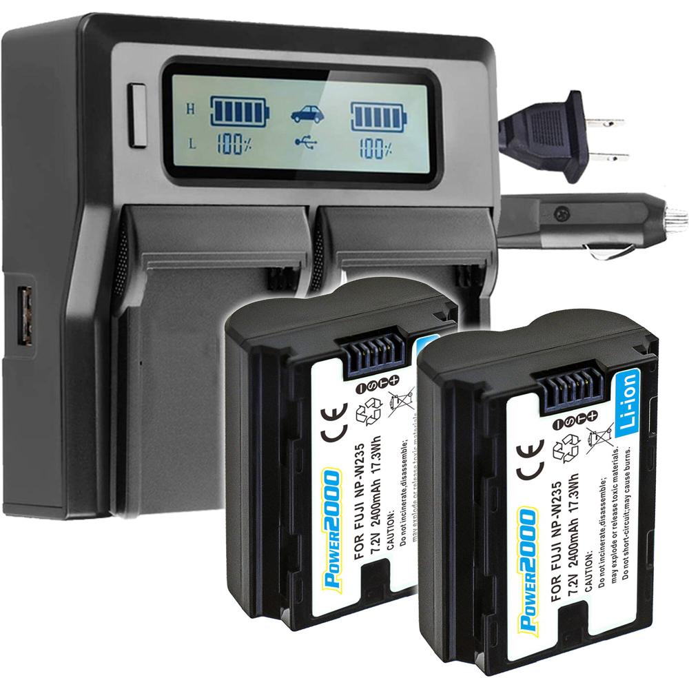 Batería Power2000 NP-W2352BC (2-Pack) y Cargador LCD de Doble Bahía - Compatible con FUJIFILM NP-W23