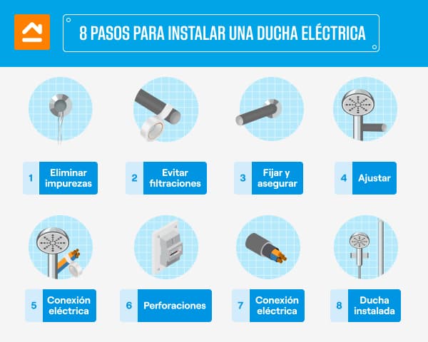 A continuación, te dejamos los 8 pasos necesarios para que la instalación de ducha eléctrica sea sencilla: