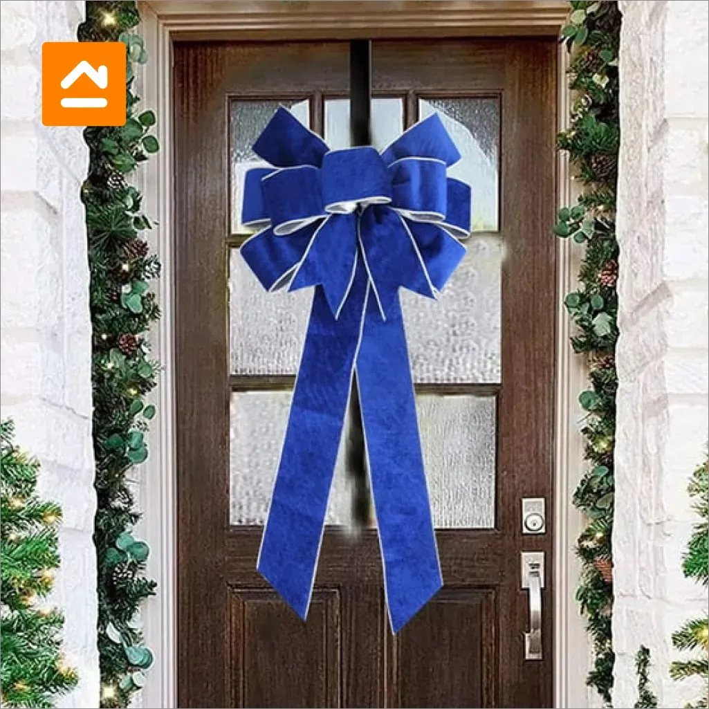 Un gran lazo en la puerta es una opción sencilla pero extremadamente efectiva. Los lazos de terciopelo o raso en colores tradicionales como rojo, verde o dorado son una elección clásica. Puedes optar por un lazo voluminoso y colocarle adornos como campanitas o luces pequeñas para darle un toque más festivo. Coloca el lazo en el centro de la puerta, en una esquina superior o alrededor del pomo, según tu preferencia. También puedes añadir pequeñas ramas de pino o acebo al lazo para darle más textura. La simplicidad de un gran lazo permite que esta decoración sea muy versátil, y es fácil de instalar y retirar al final de la temporada.