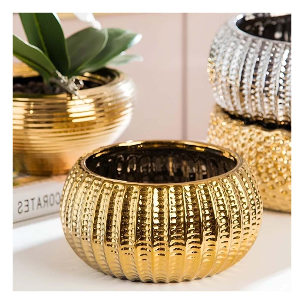 Bol Redondo Ceramica Galvanizada 15x20x10.5cm Dorado Y+Papel Regalo