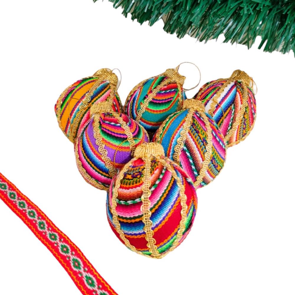 Bolas de Navidad Andinas con Greca Dorada 10 cm Adorno Peruano