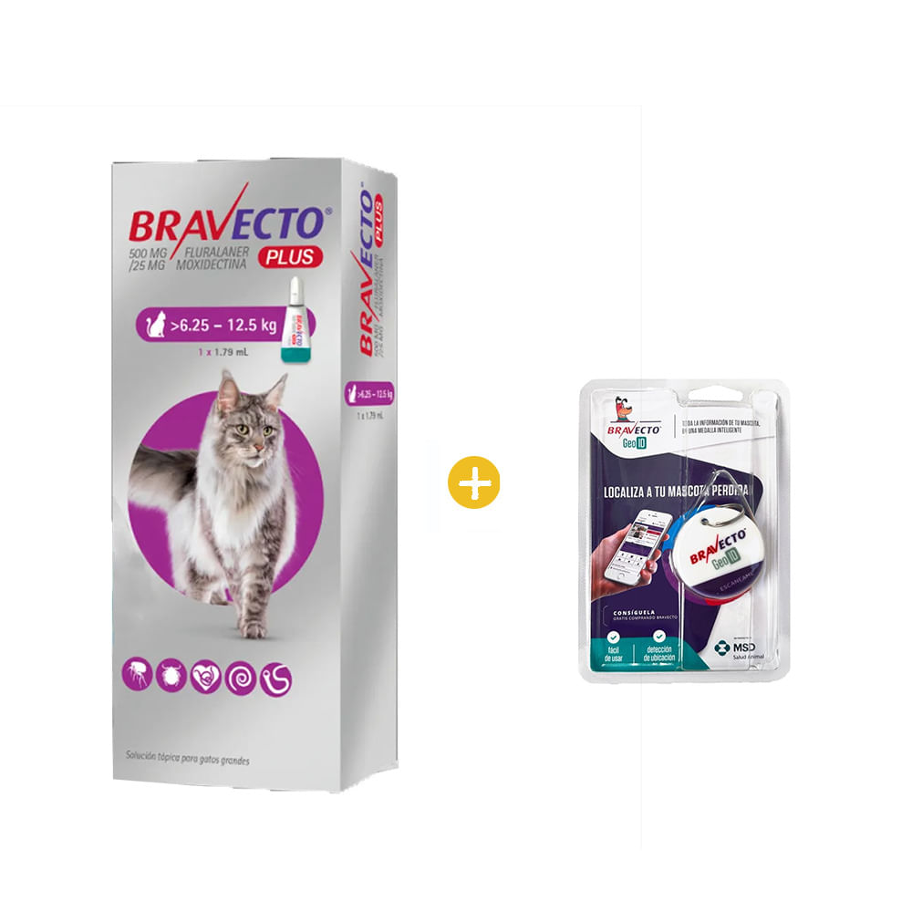 Bravecto Plus Antipulgas Gato Pipeta 500 mg 6.25 Kg a 12.5 Kg y GRATIS Geolocalizador