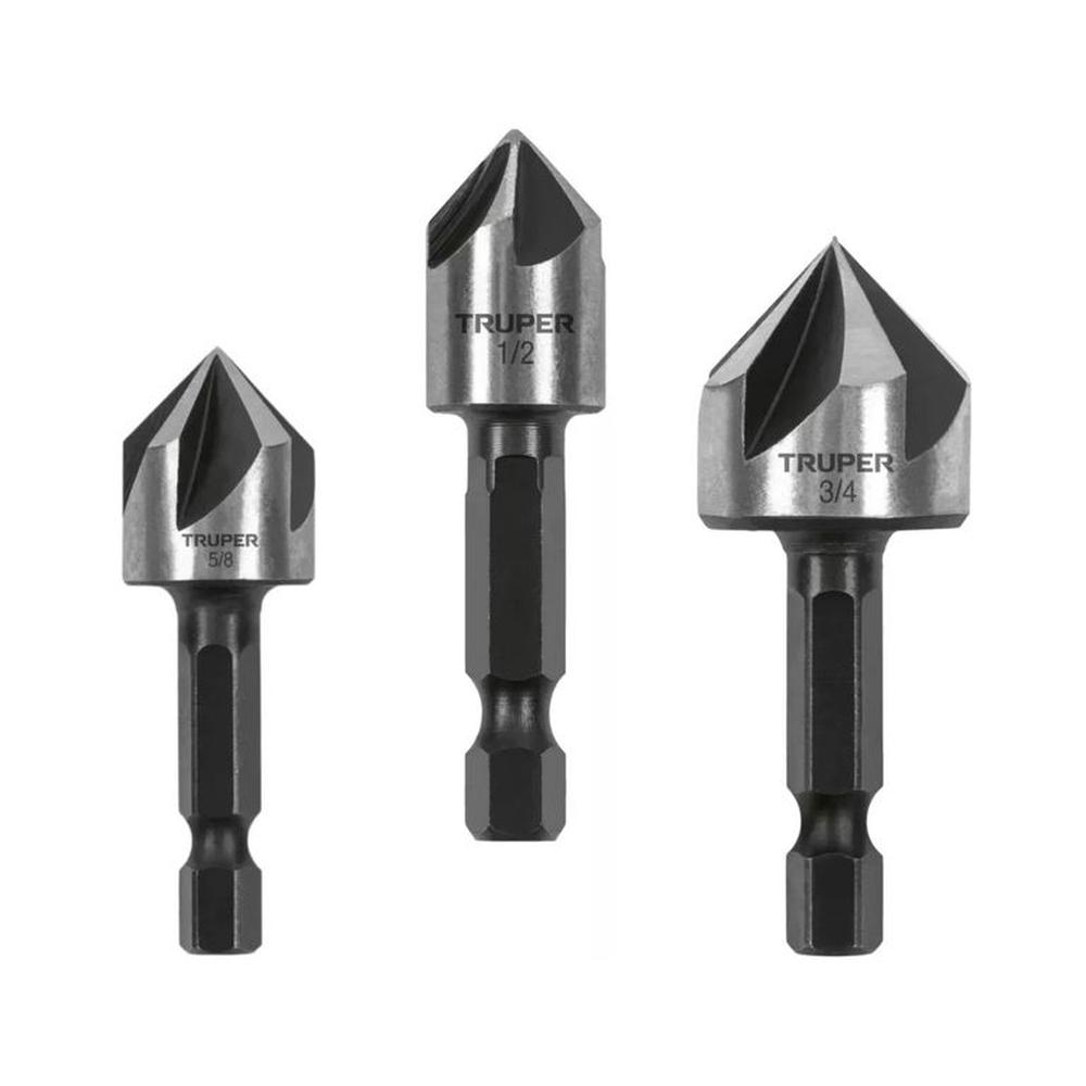 Brocas avellanadoras HSS para metal y uso general 3 unidades, Truper Gris