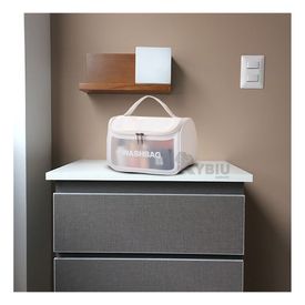 Neceser Organizador Estuche de Maquillaje Cosméticos PU con Asa Beige