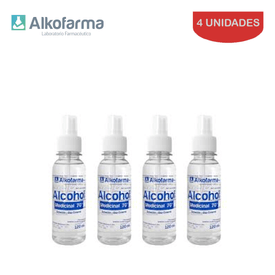 Alcohol Líquido Medicinal 70° Alkofarma 120ml con Atomizador Pack 4 Unidades