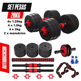 Pesas 20kg Importado Mancuerna Barra Push-Rueda AB guantes