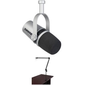 Kit de Micrófono para Podcast Shure Mv7 con Brazo Articulado Plateado